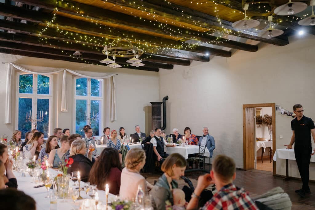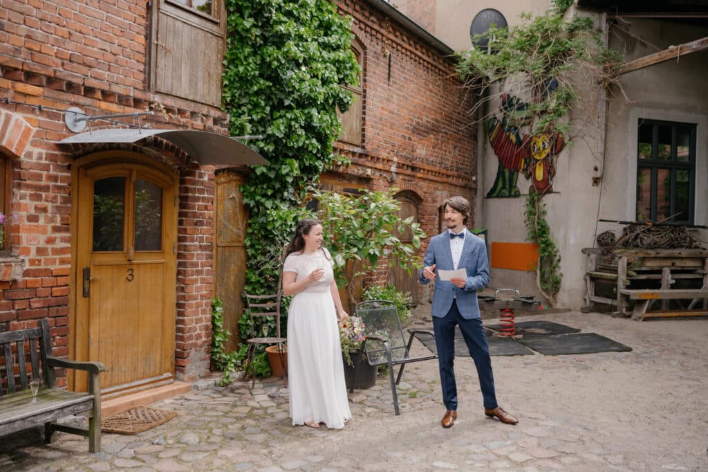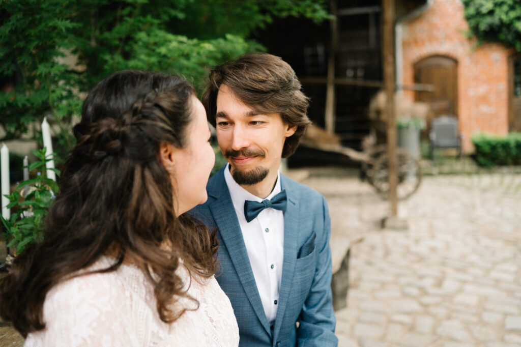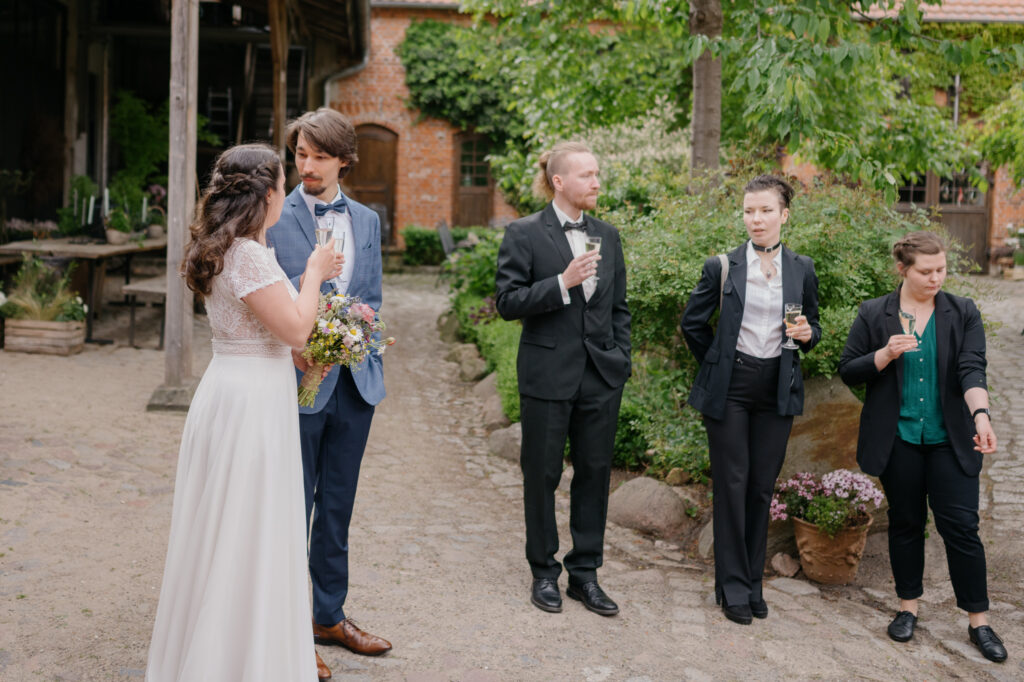 Im Mai hatte ich das Glück, die Hochzeit von J+M auf dem Jerichower Land-Hof in Genthin begleiten zu dürfen. Der Hof liegt in einer wunderschönen und ländlichen Gegend in der Nähe von Berlin und Brandenburg. Der Hof ist bekannt für seine historische Atmosphäre und seine malerische Umgebung. An dem Tag war es sehr heiß und die Sonne schien den ganzen Tag. Die freie Trauung fand im Garten der Festwirtschaft statt. Es war sehr emotional und zugleich auch sehr witzig. Alle Gäste hatten viel Spaß und es gab viele Tränen vor Freude. Nach der Trauung gab es ein tolles Essen im Festsaal und schließlich konnten alle Gäste einen eigenen Stop-Motion-Film erstellen, der an die besonderen Momente der Hochzeit erinnern wird. Es war eine wunderschöne und unvergessliche Hochzeit. J+M verbrachten einen unvergesslichen Tag mit ihren Liebsten und die Erinnerungen an diesen Tag werden sie sicherlich ein Leben lang begleiten.